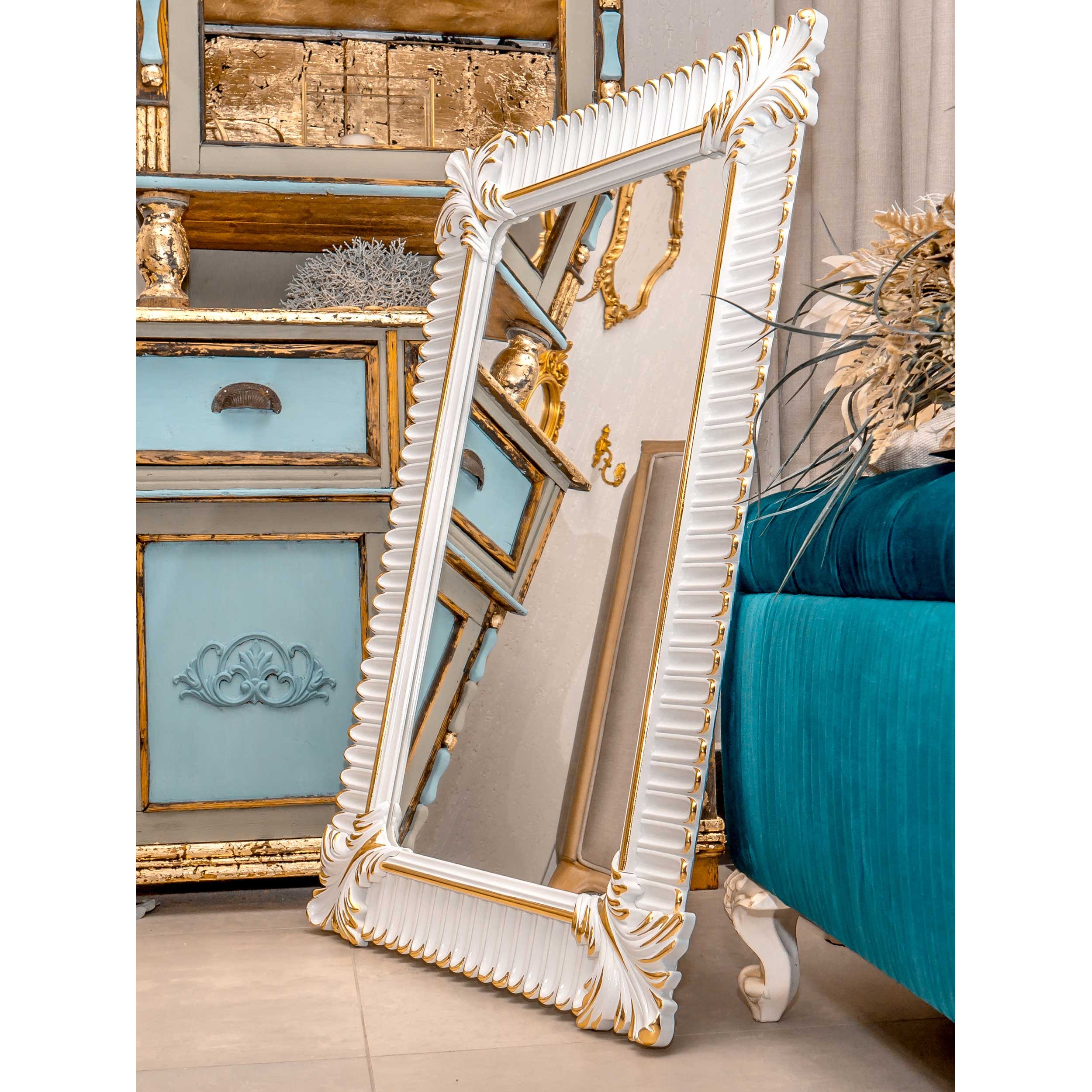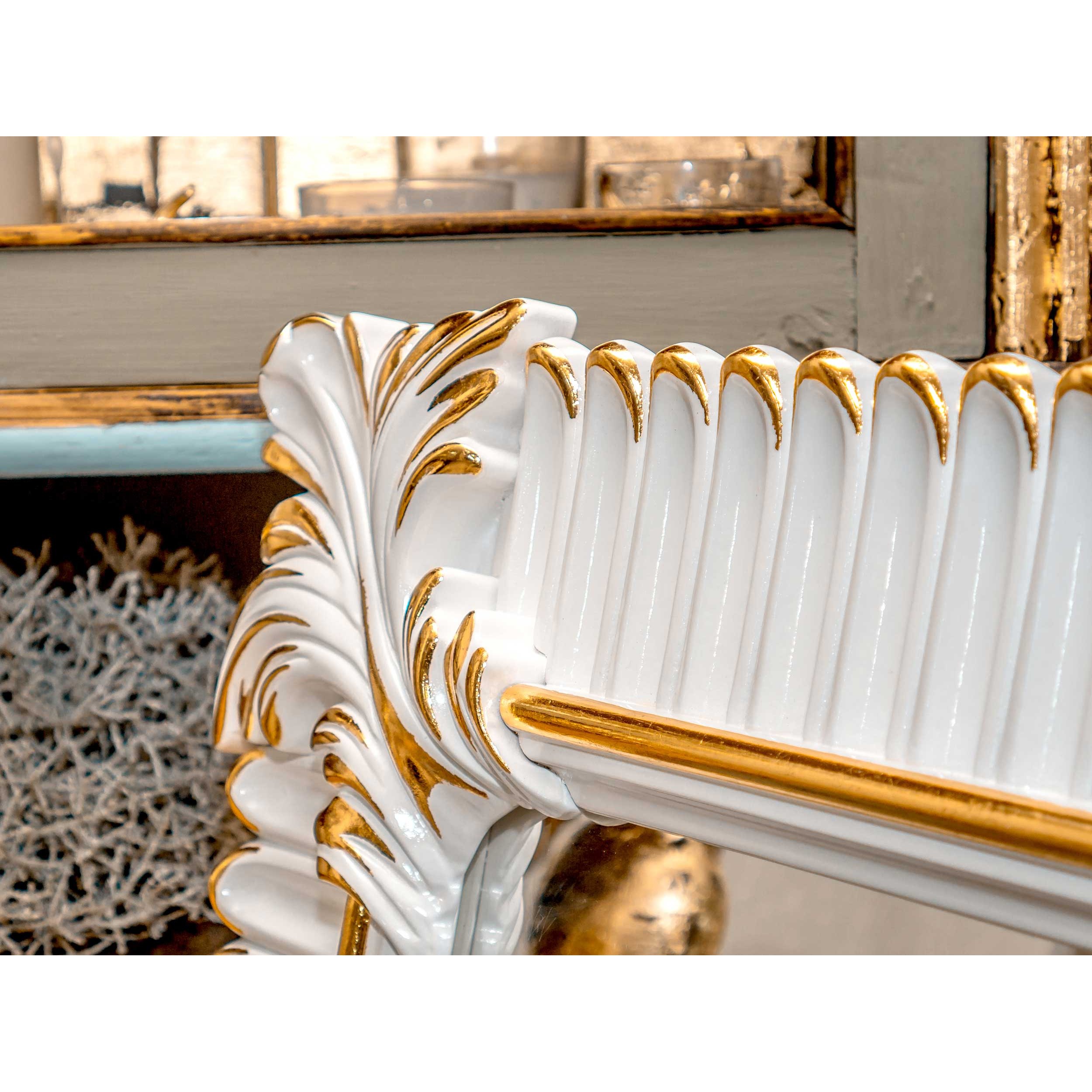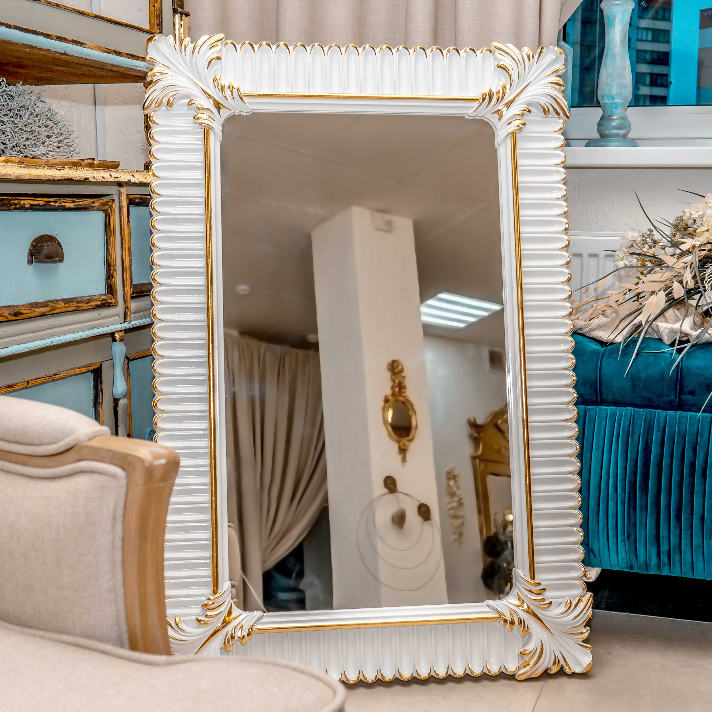 Главная / Магазин / Настенное зеркало Лугано Lugano C 74*110*4 см, белый лед французское золото