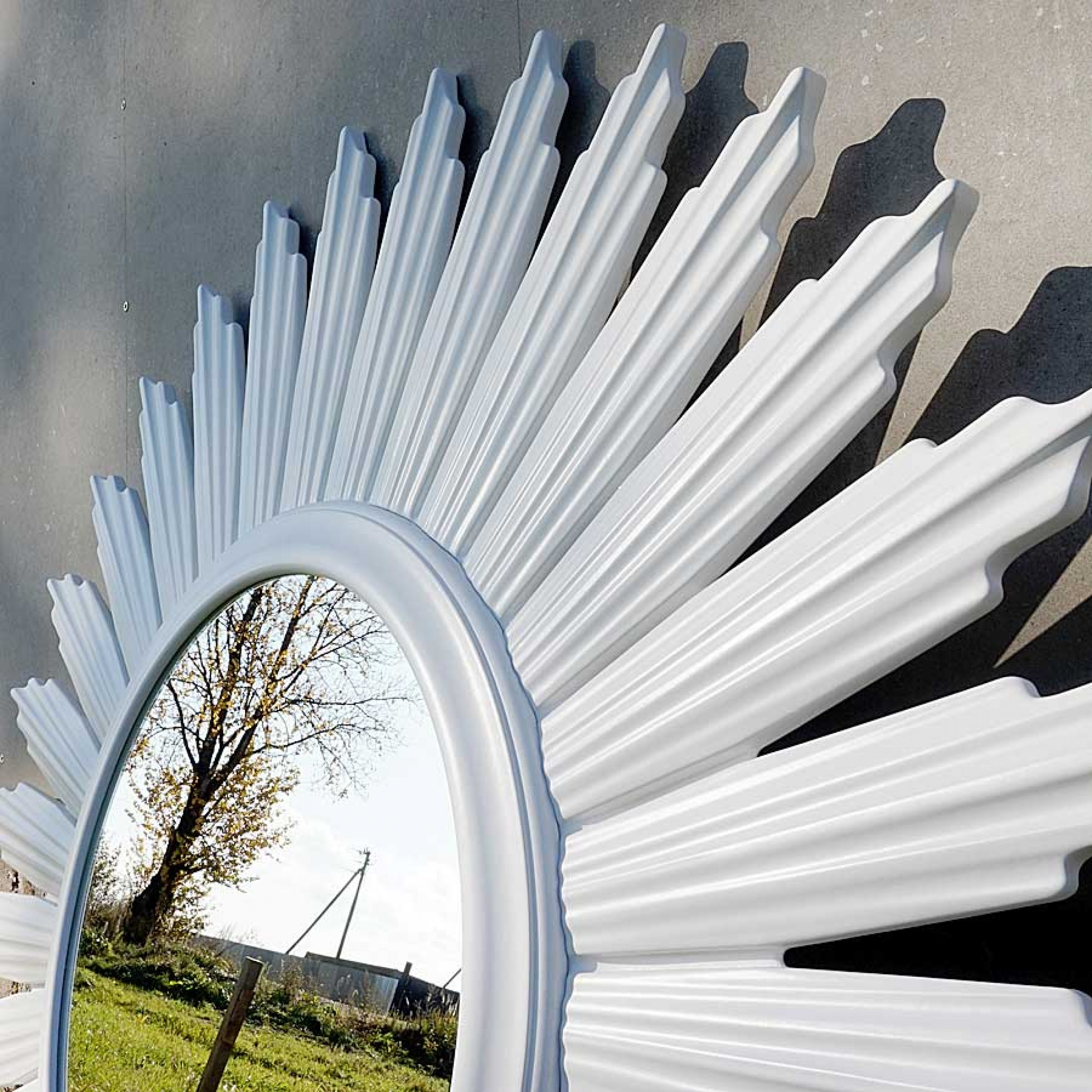 Зеркало-солнце прекрасно подходит для точечной расстановки акцентов на отдельных стенах. Для этого его размещают над диванами или кроватями, а также поверх комодов, каминов или тумб. Не смотря на то, что "Санбёртс" олицетворяет классику, оно будет уместно также и в современном, и в эклектичном интерьере.