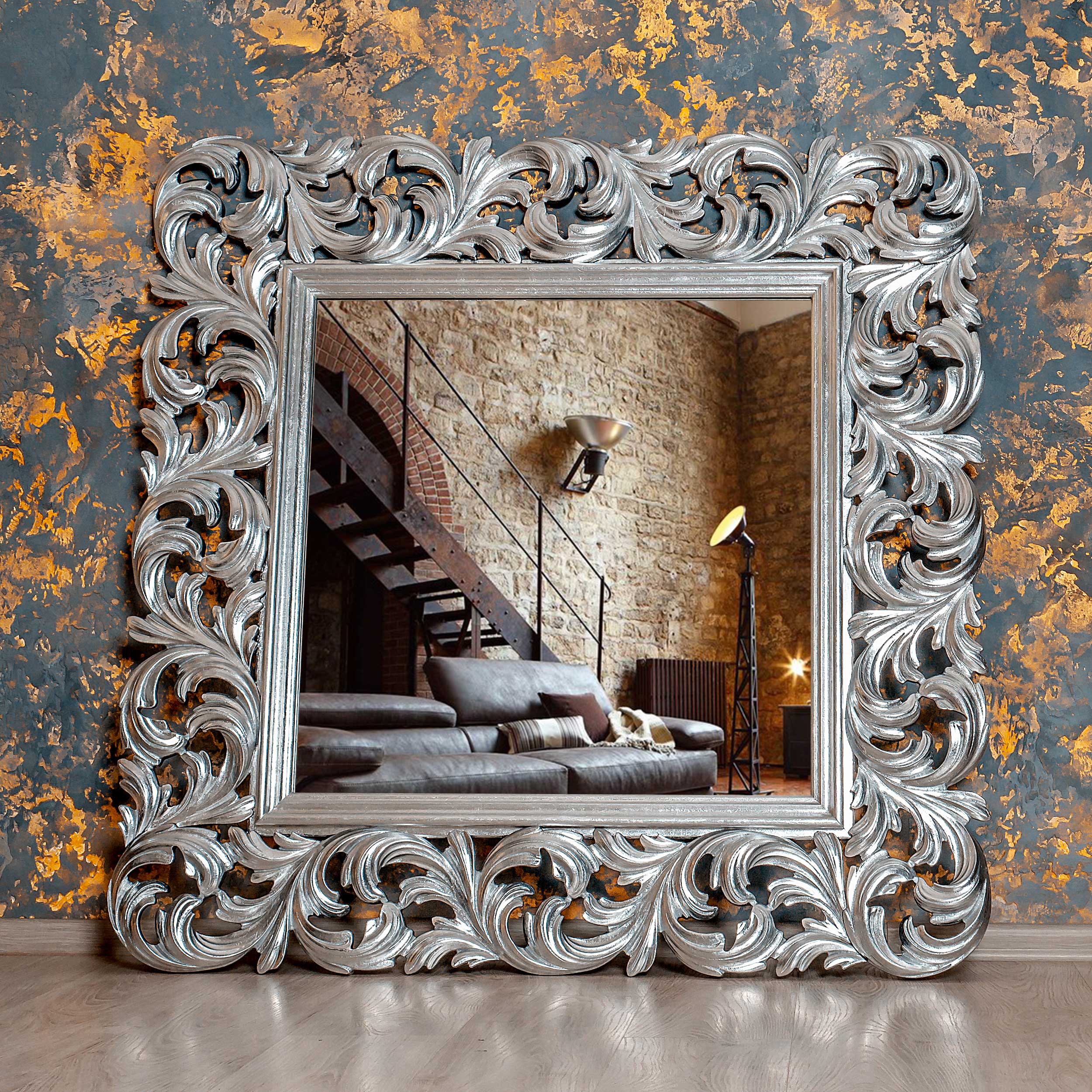 Главная / Магазин / Настенное зеркало Таупо Taupo C 120*120*4 см, серебро барокко