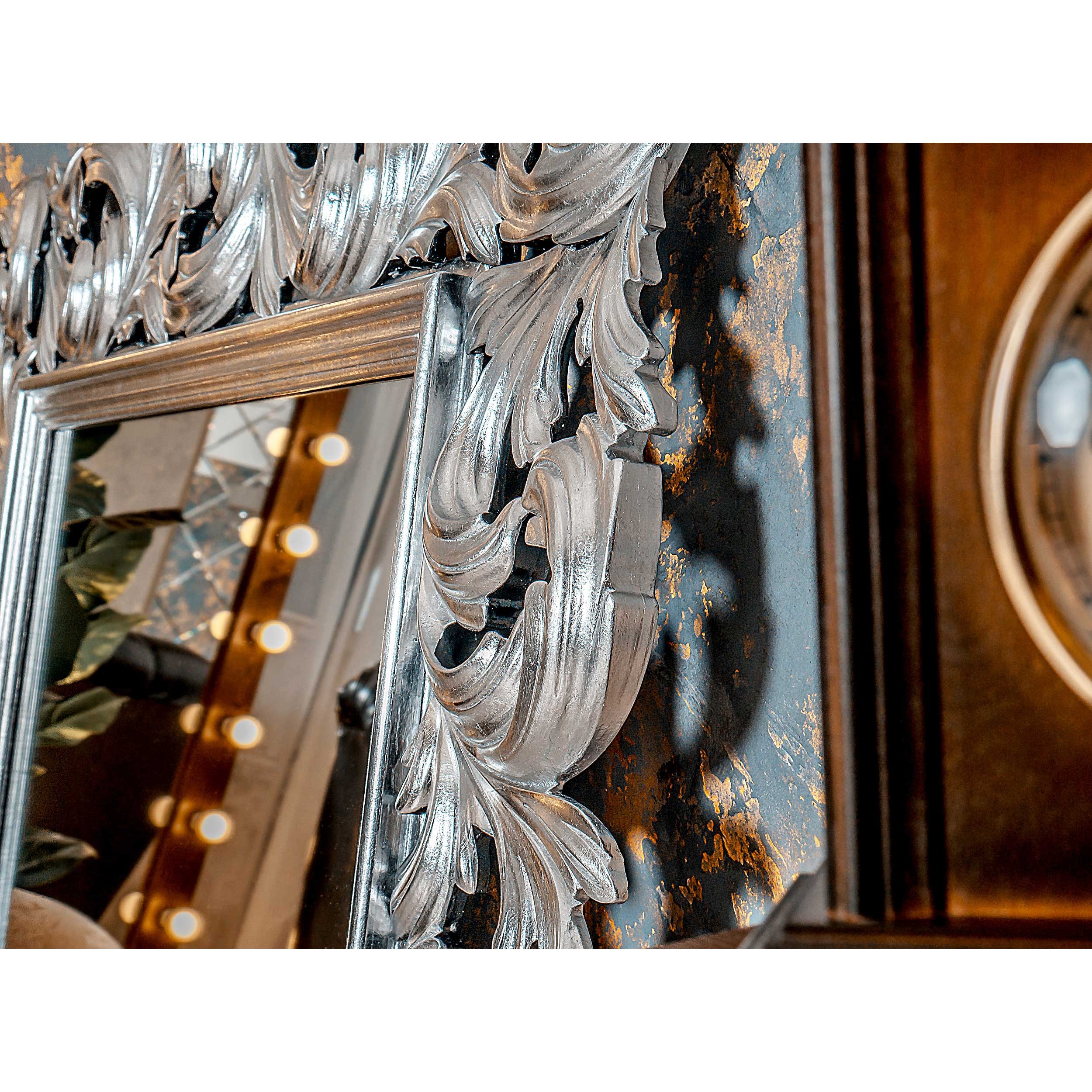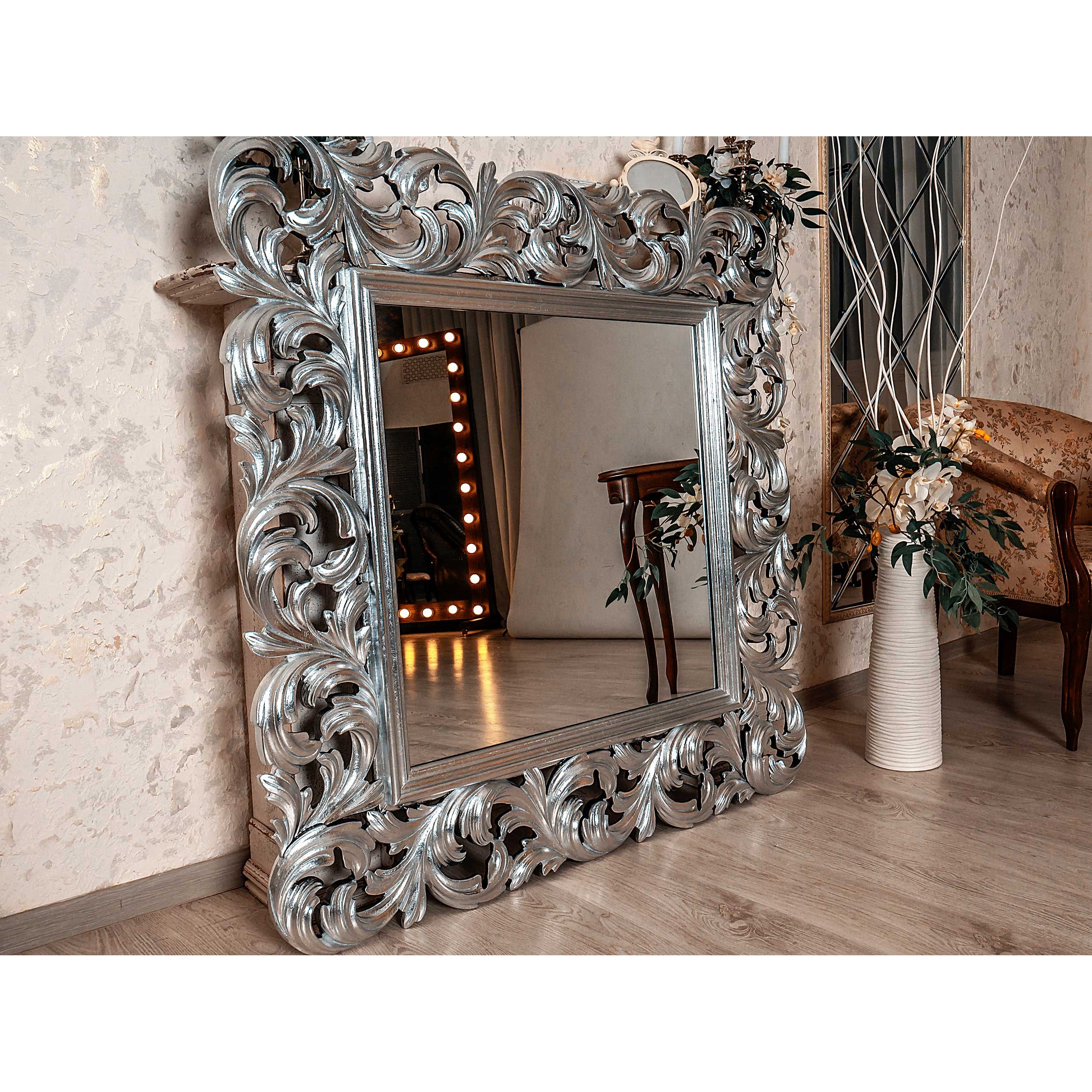 Богатый растительный орнамент всегда использовался в дизайне зеркал, и сейчас ничуть не потерял своей актуальности. Мы не стали отступать от традиций, но сделали это зеркало капельку современнее.